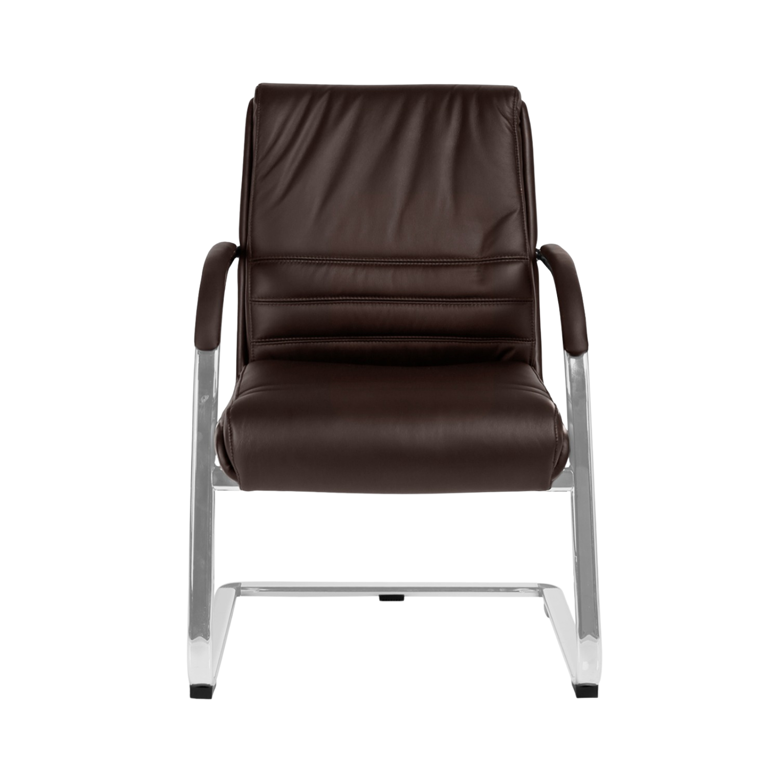 FEATURES – Non-swivel. – Leather padded armrests. – Chrome finished metal Cantilever base. – Cushioned seat & back rest upholstered in Genuine Cow Hide Leather.