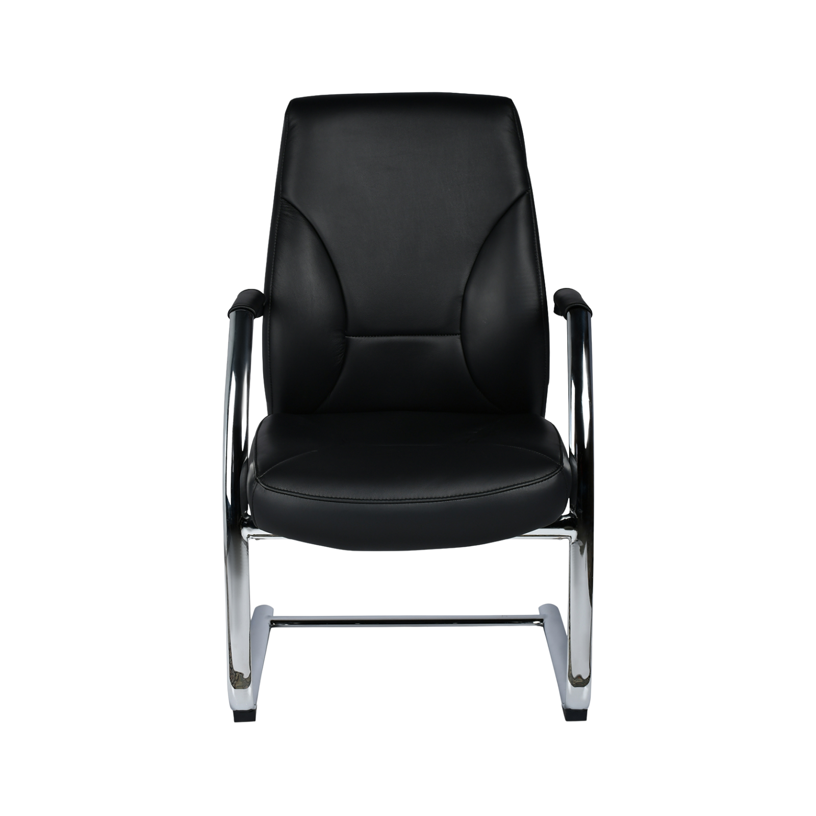 FEATURES – Non-swivel. – Polished/Padded metal armrests. – Chrome finished cantilever wheelbase. – Cushioned seat & backrest upholstered in Genuine Leather.