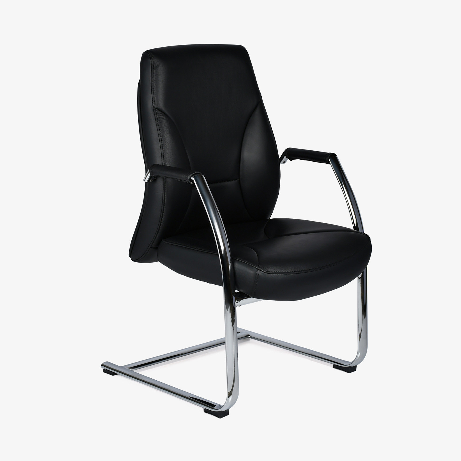 FEATURES – Non-swivel. – Polished chrome metal armrests & Cantilever wheelbase. – High density seat & backrest in Genuine Leather.