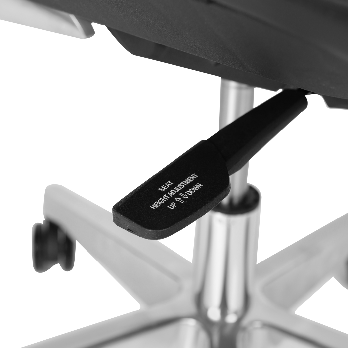 – High density seat & backrest. – Polished metal armrests & wheelbase. – Multi tilt mechanism & Tilt tension adjustment. – Pneumatic seat height adjustment.