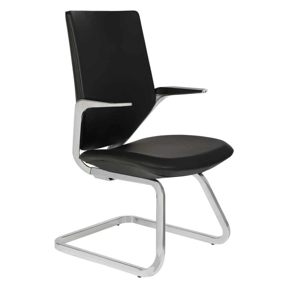 – Non-swivel. – Polished metal armrests & cantilever base. – High density seat & backrest in PU leather finish.