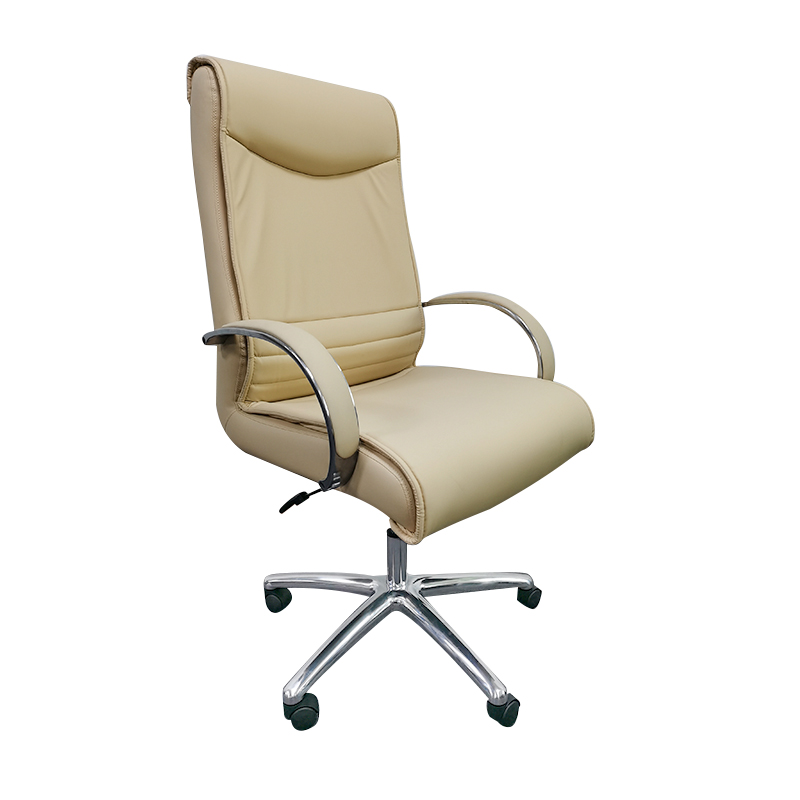 FEATURES : – Padded chrome finished armrests. – Standard tilt mechanism with tilt tension adjustment. – Pneumatic seat height adjustment. – Metal wheelbase in chrome finish with PU Castors.