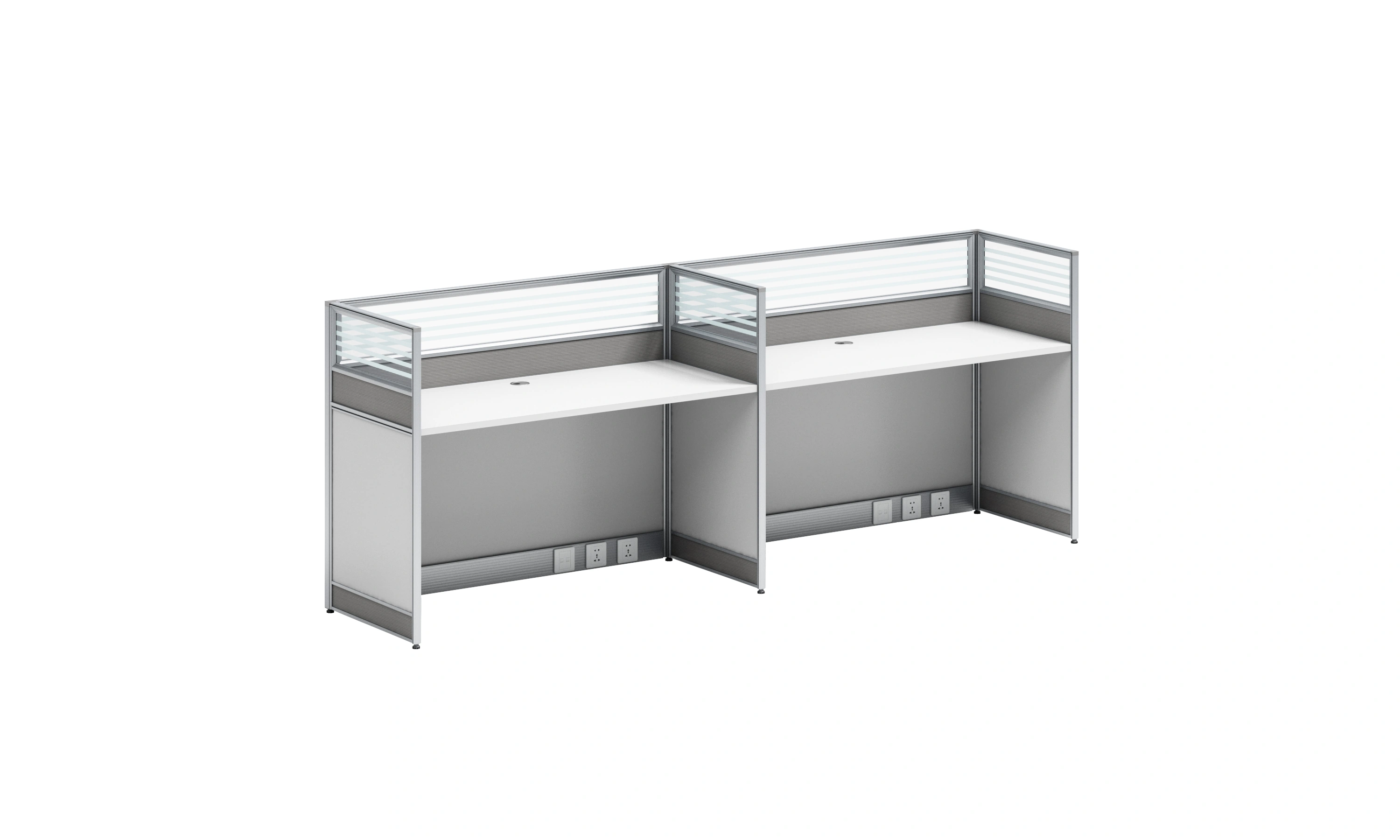 LINEAR TWO PERSON WORKSTATION SIZE: W2490*D630*H1100 MM Color: White + Grey Stripe