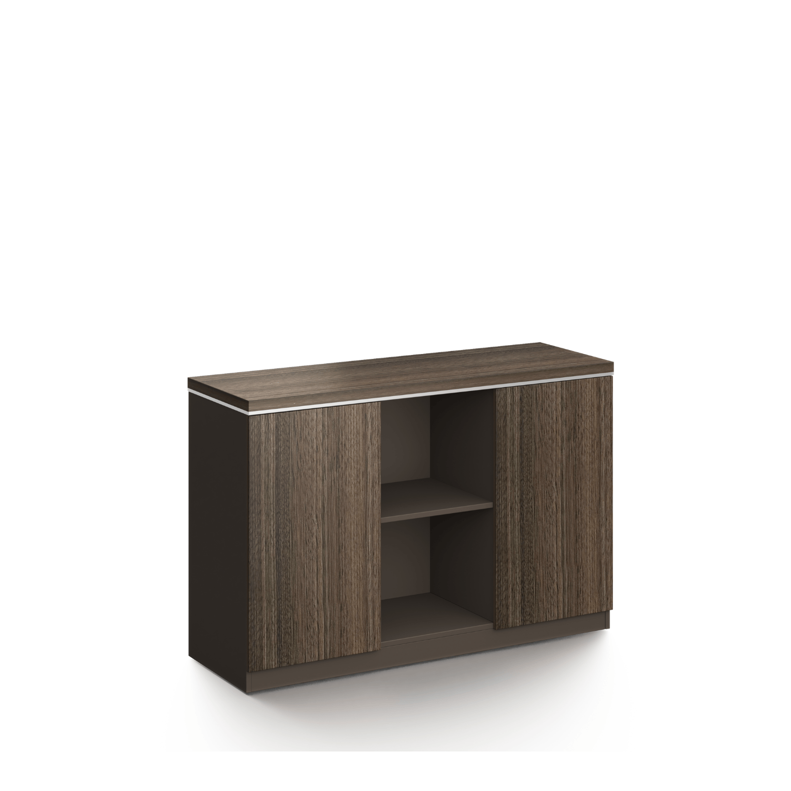 Soft‑close swing doors reduce noise and prevent slamming. The aluminium trim adds a metallic accent and gives the cabinet a modern style. The structure stays stable, and the materials support long‑term use. In addition, the design matches the DG Series desks and other DG07 storage units. This creates a unified and professional office layout.