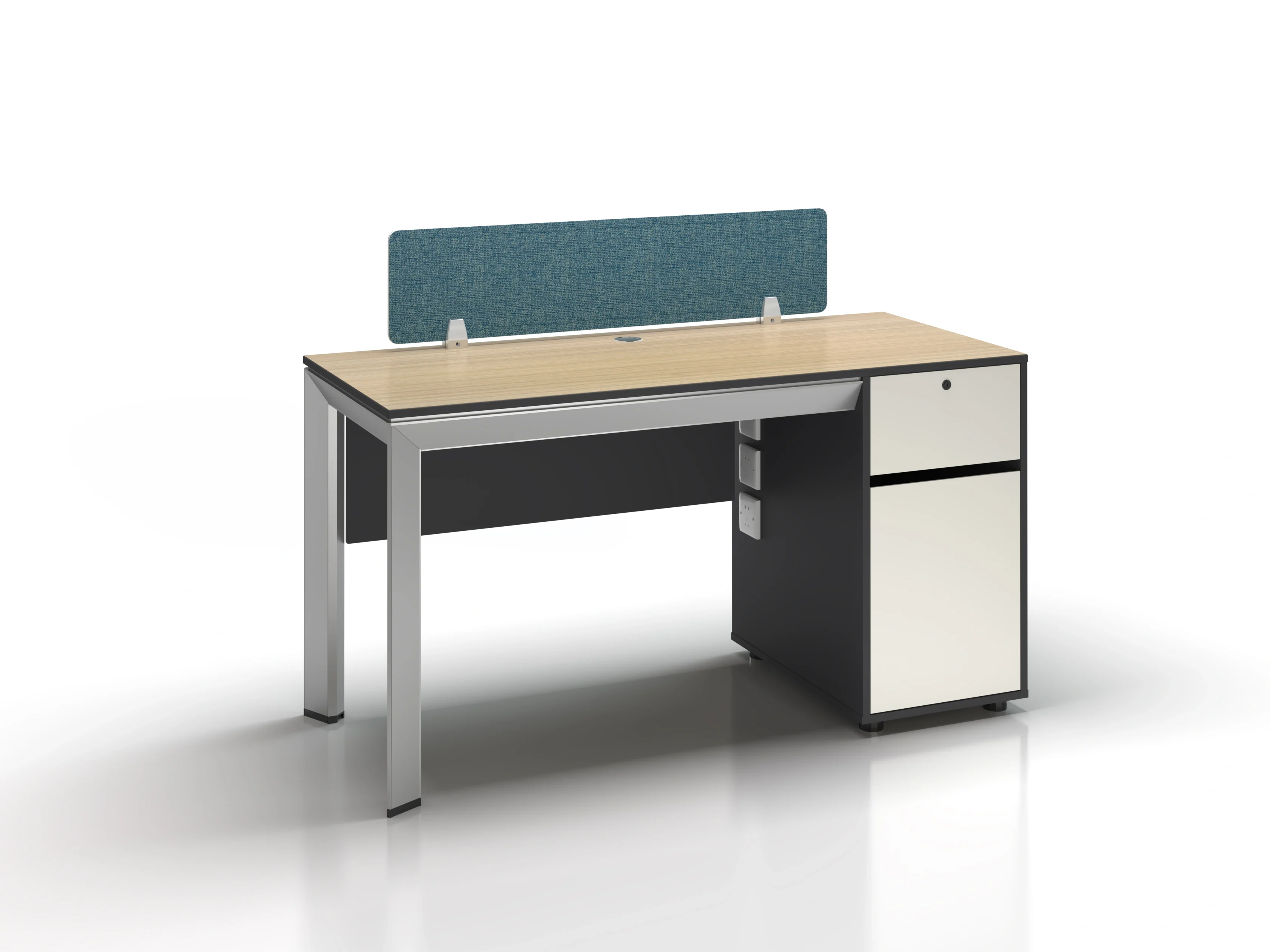 With metal leg and 3 drawer cabinet with lock. Finish – Melamine Color: Brown Oak + Brown.