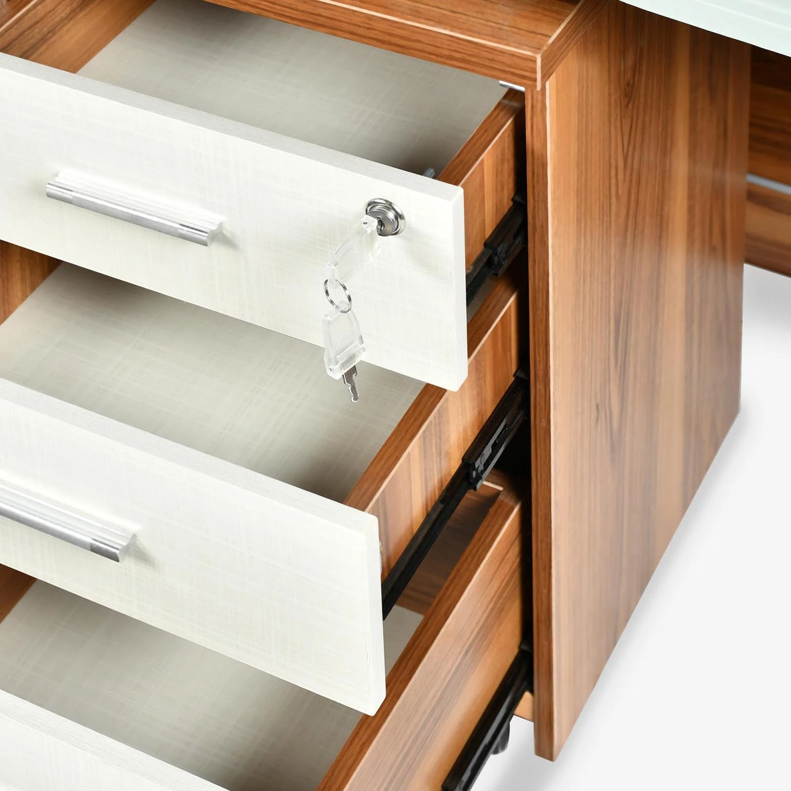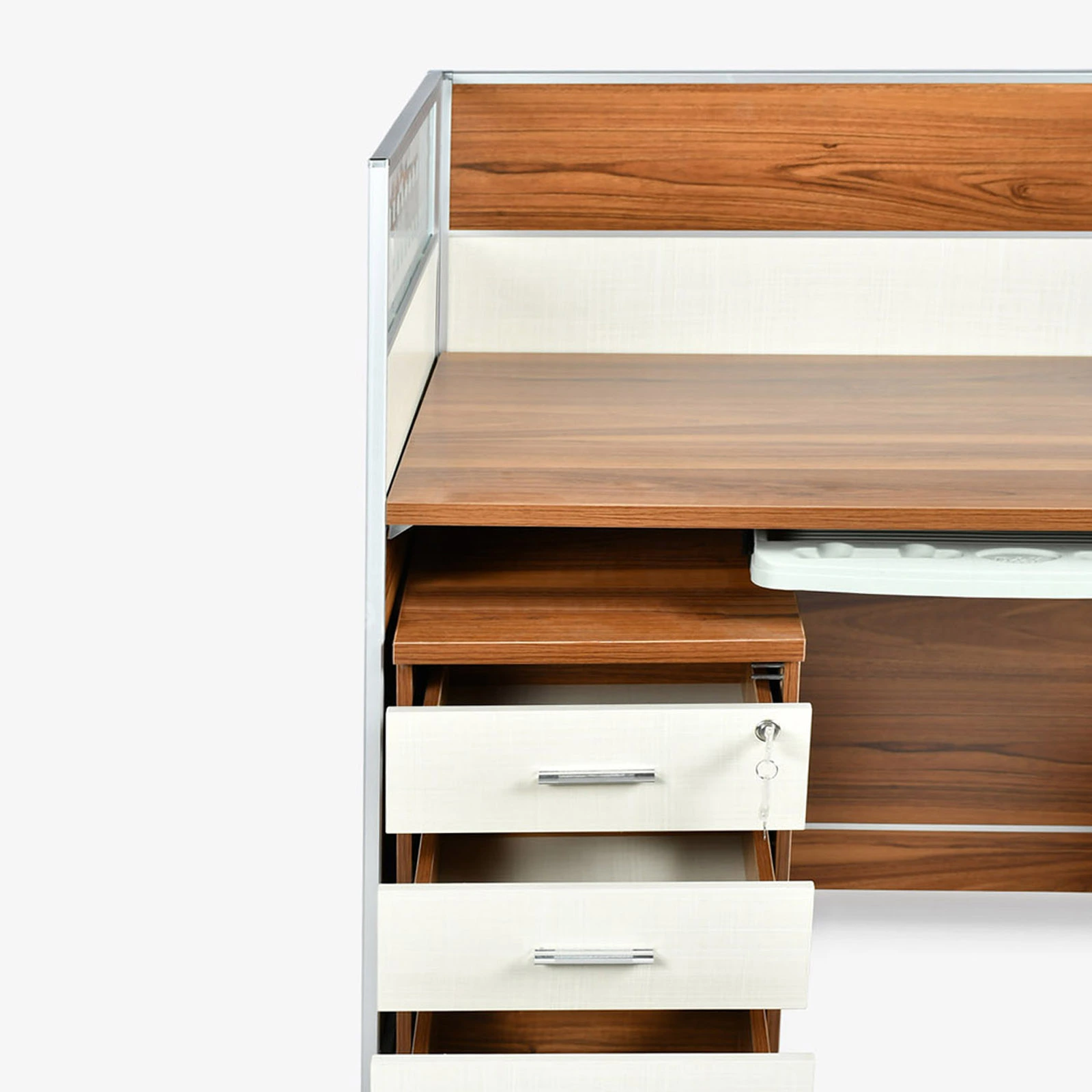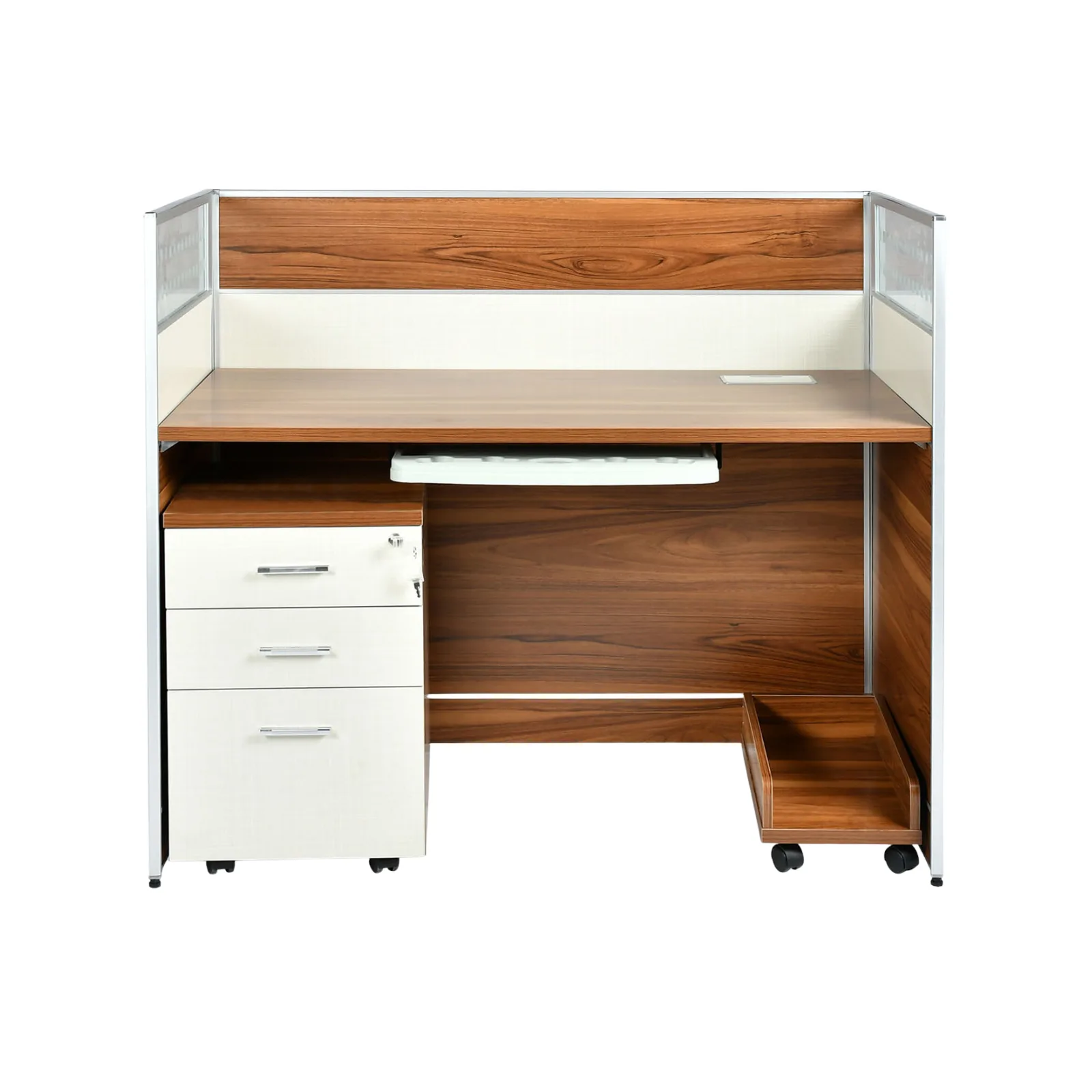 With mobile pedestal, CPU holder & Keyboard tray.