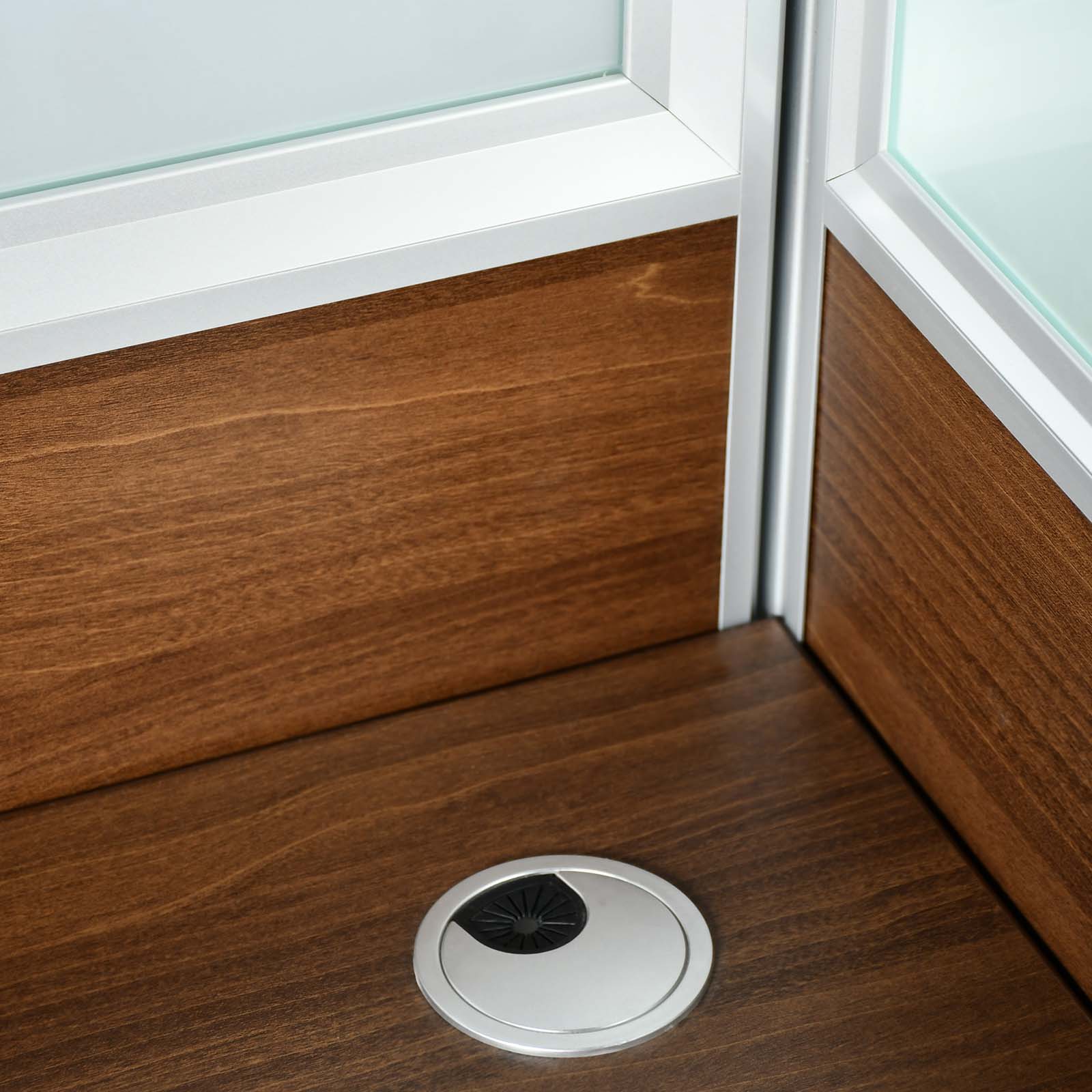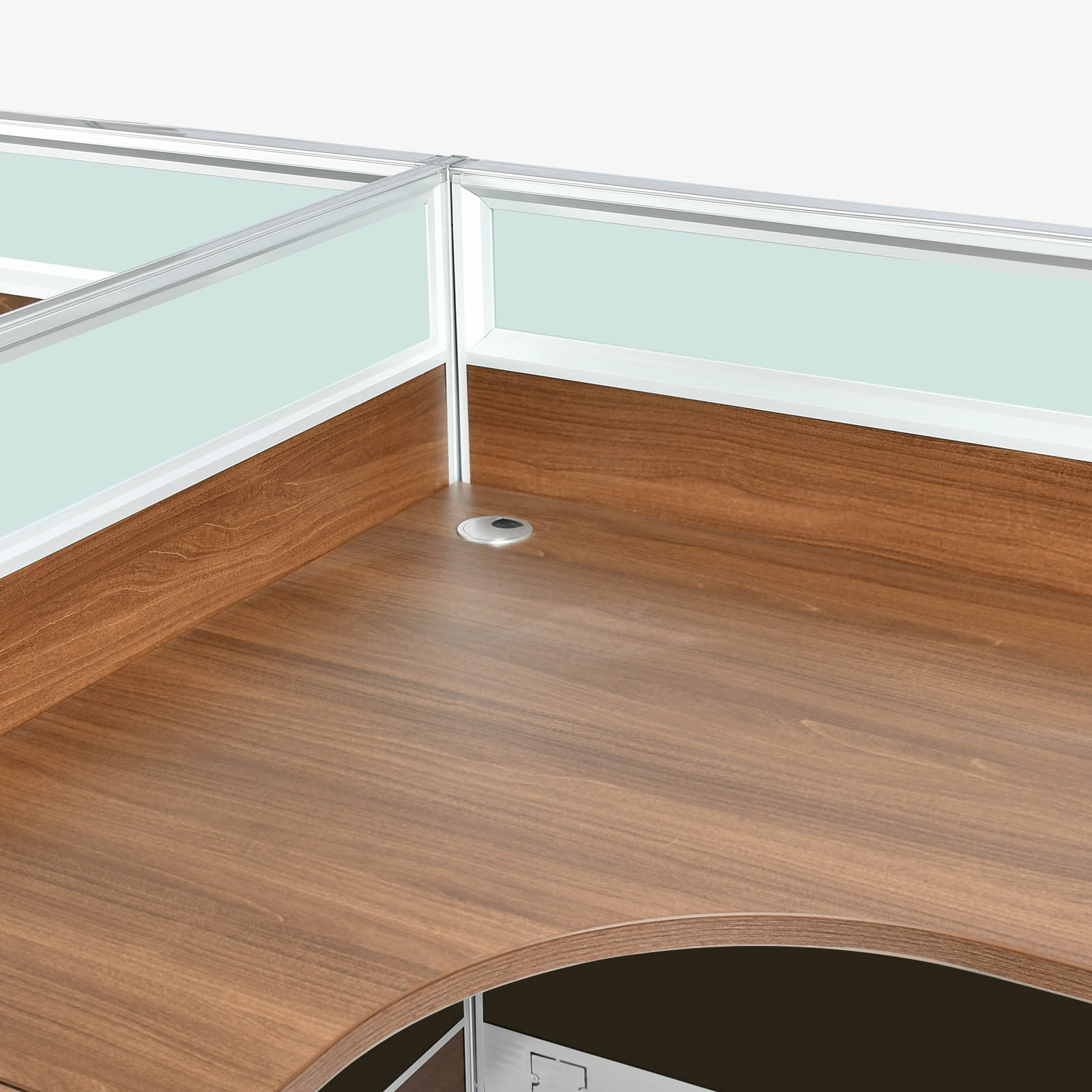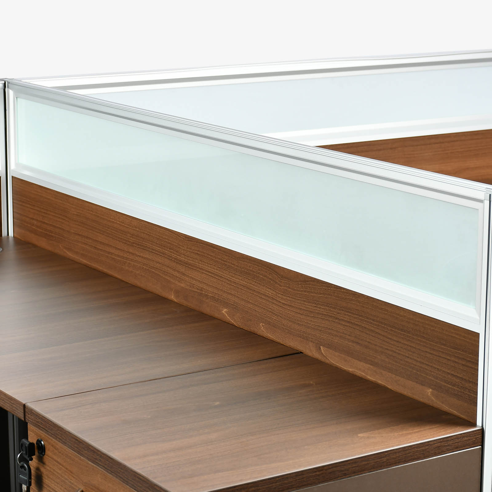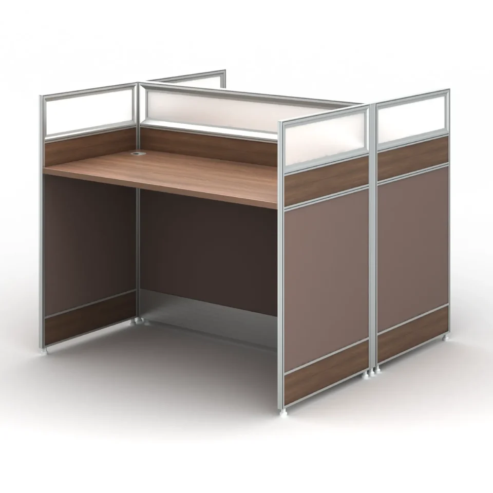 Two Person Workstation with Melamine and Glass Partition.
