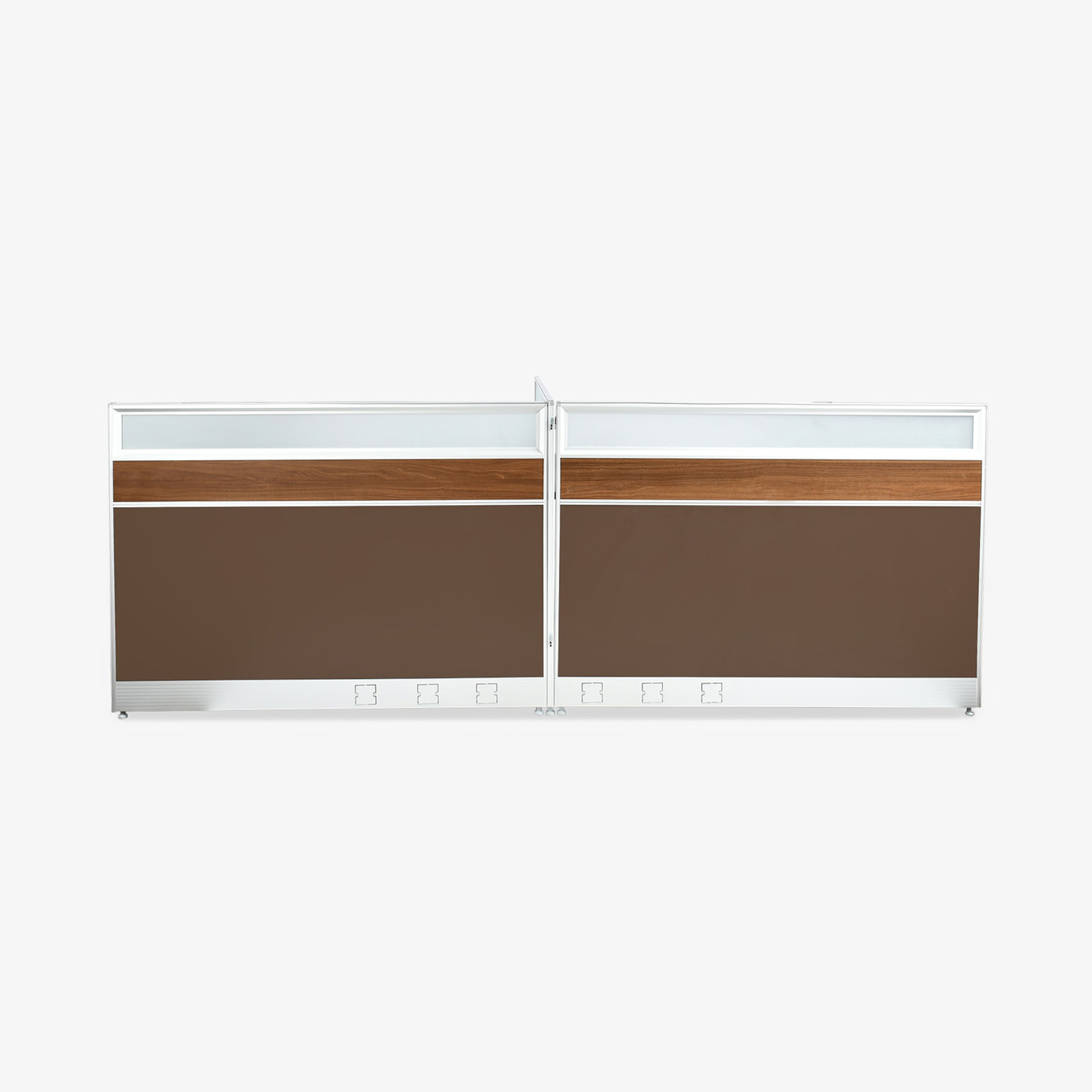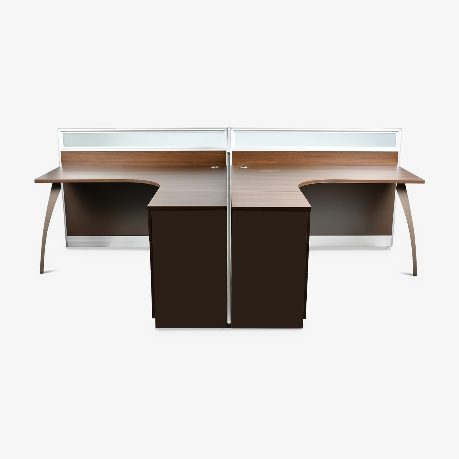 2 Person T-shaped Workstation Dim: W2840*D1420/450*H1050 MM Finish – Melamine. Color: Brown Oak + Brown.